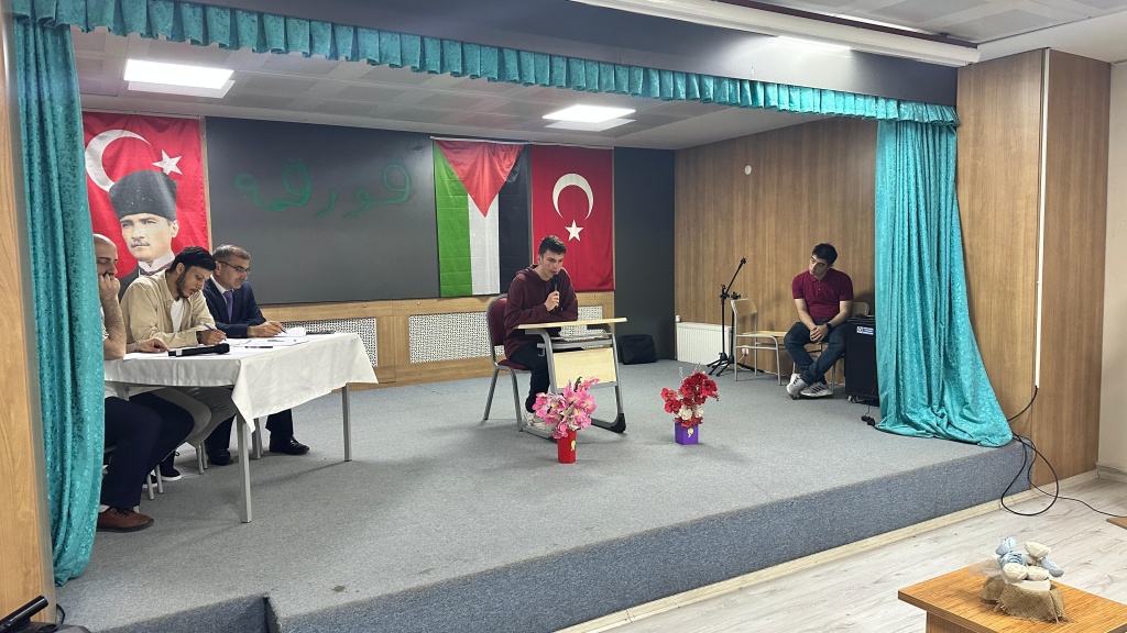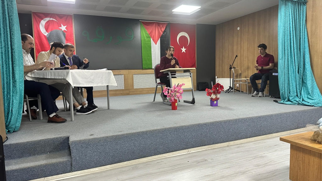 Programımız, saygı duruşu ve İstiklâl Marşı ile başladı. Ardından hafız öğrencimiz Muhammet Ali Gül’ün Kur’an-ı Kerim tilaveti ile devam etti. Okul müdürümüz Sayın Yücel Şimşek Çelik’in açılış konuşmasının ardından yarışma başladı. Finale kalan beş öğrencimiz, büyük bir gayret ve özveriyle ezberledikleri hadisleri jüri önünde okuyarak yarıştı.