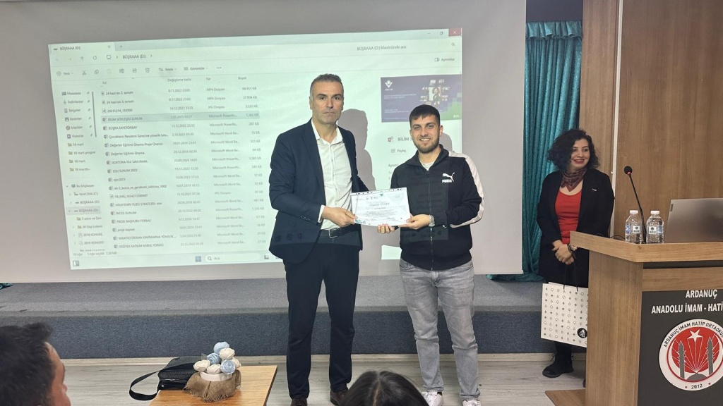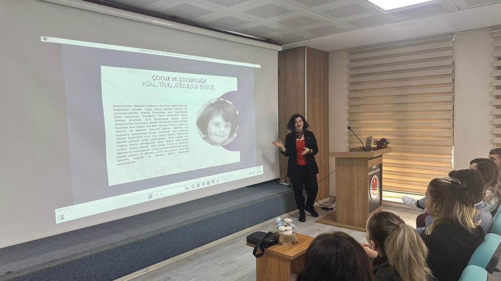Erzurum Atatürk Üniversitesi Öğretim Görevlisi Dr. Büşra FAYETÖRBAY, ilçemizdeki öğretmenlerin de katılımıyla gerçekleştirdiği konferansta yaratıcı dramanın özellikle İngilizce derslerinde nasıl etkili bir öğretim yöntemi olarak kullanılabileceğine dair değerli bilgiler paylaştı.